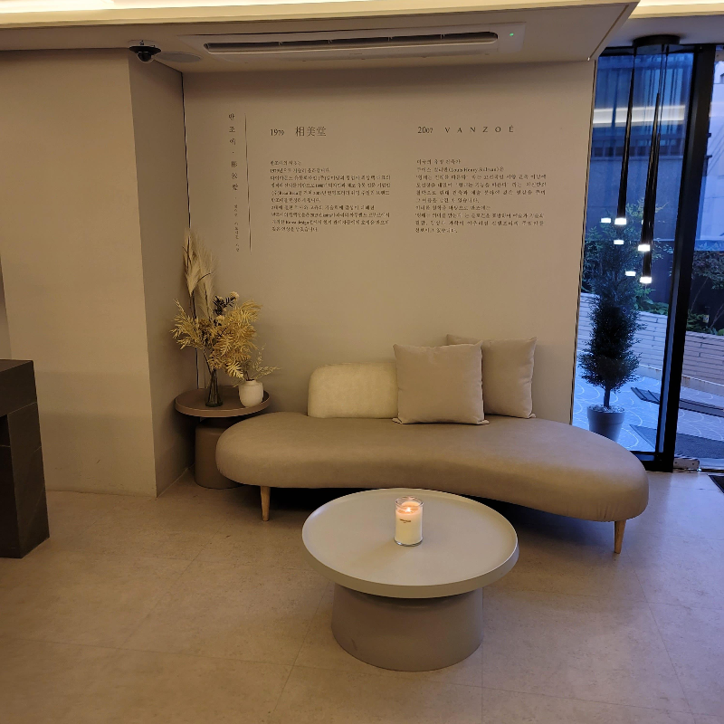 입구에서 안내해 주시는 분따라 들어가면 앉아서 잠시 대기하는 공간이 마련되어 있고요, 반조애 관련 전시되어 있는 공간이 있는데 이때 뭔가 되게 체계적인 느낌을 받았어요!! 쇼파에 앉아서 예약자 확인 후 5분 정도 기다리면 2층으로 안내를 도와주십니다!