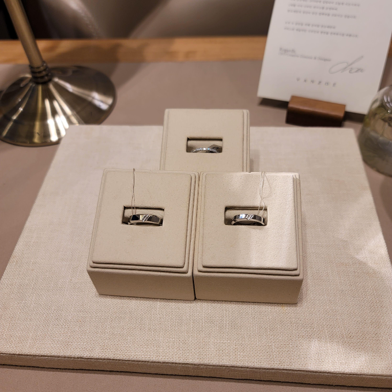 백화점은 워낙 정해져 있는 디자인이라 자칫 잘못하면 너도 나도 다 끼고 있는 상황이 생겨서 특별함이 없어 보여서 아쉬웠고, 아크레도는 생각보다 웨딩반지공장처럼 분위기가 조성되어 있어서 조금 어수선했던 느낌이었습니다.