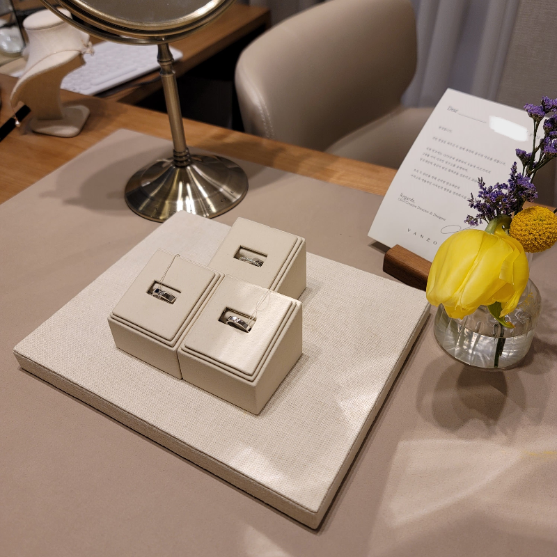 2층으로 올라가자마자 보이는 영롱하고 예쁜 예물들..ㅋㅋㅋㅋ아니 여기 왜 이렇게 고급스러운 거야~~ 속으로 외치면서 안내해 주시는 분 따라 작은 방처럼 되어있는 프라이빗한 공간으로 들어왔습니다.
