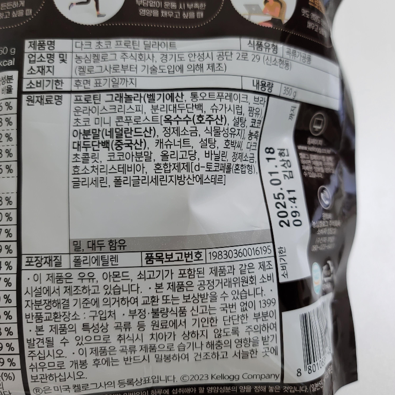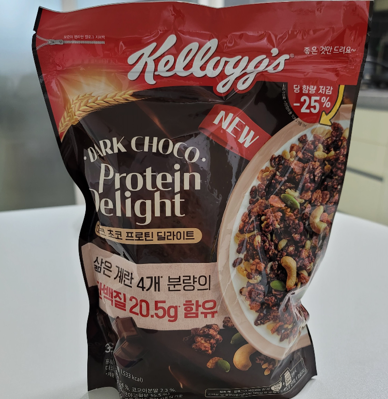 저처럼 초코를 워낙 좋아하시는 분은 늘 먹을 때마다 당이 걱정이실 텐데, 이 시리얼은 당 함량도 25% 저감 되어있고 단백질도 무려 삶은 계란 4개 분량의 단백질이 함유되어 있다는 문구가 눈에 들어오더라고요!
