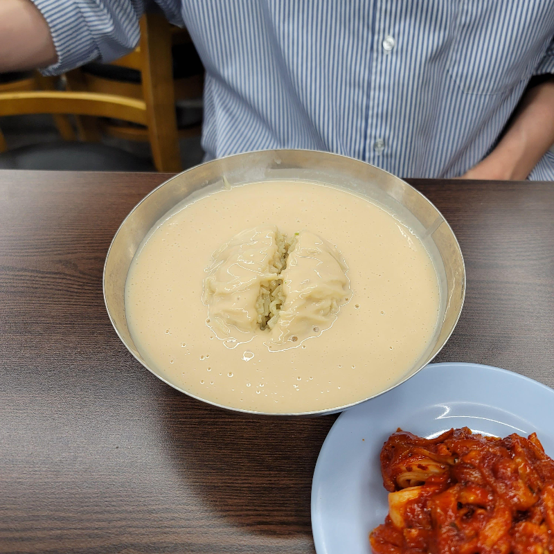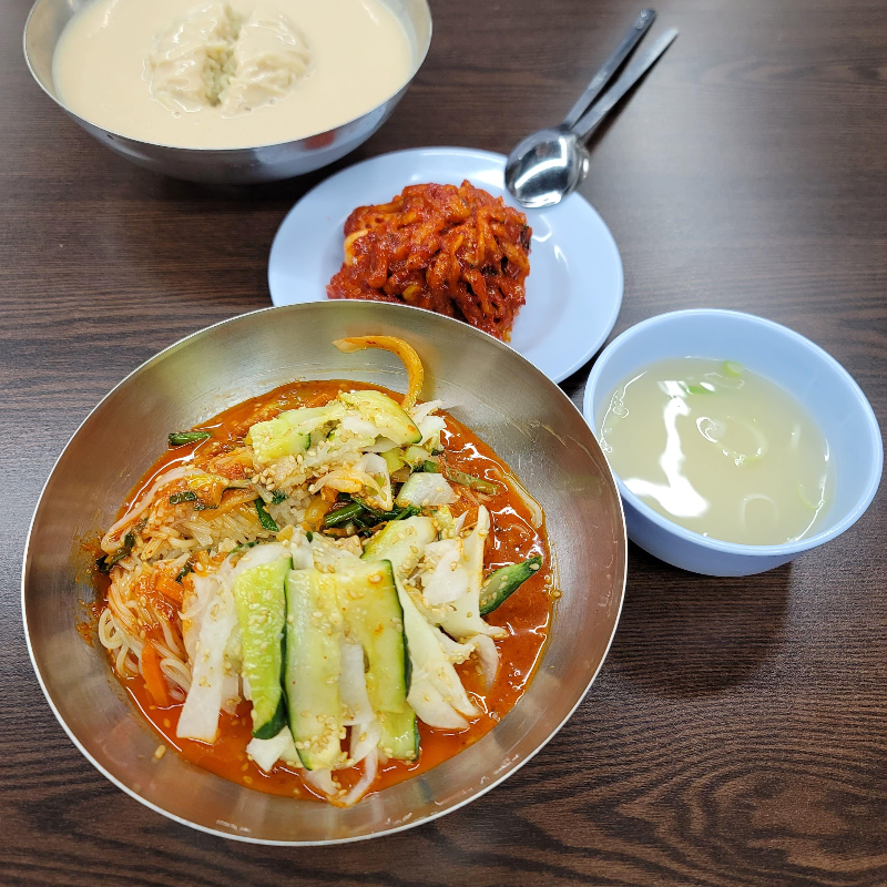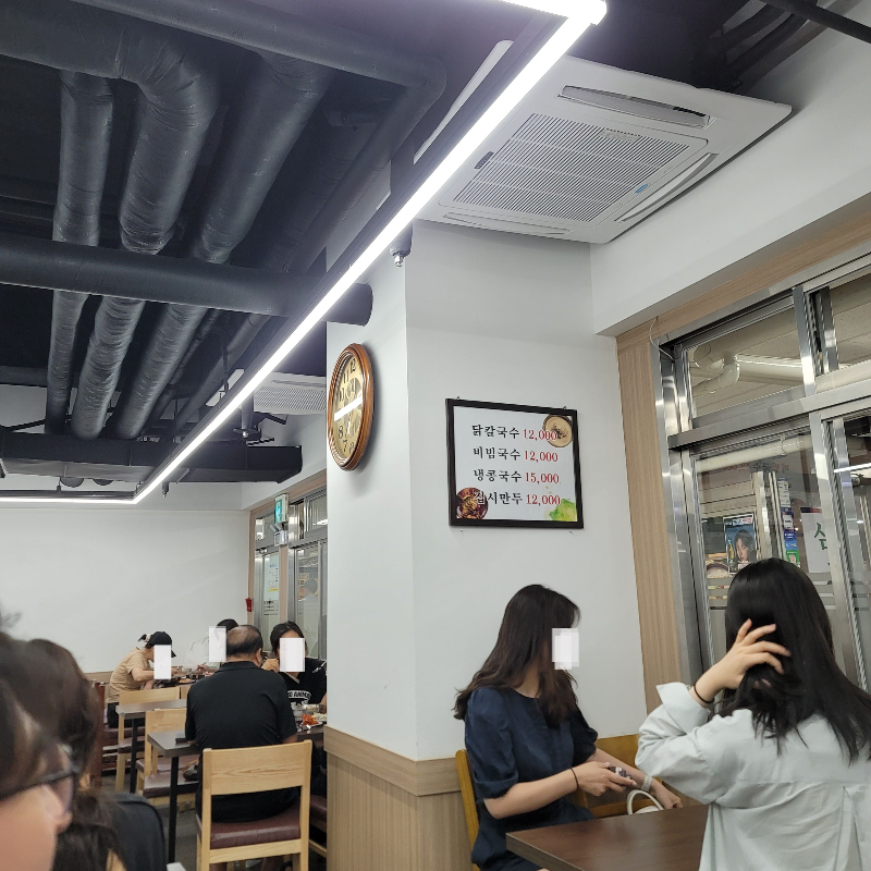가게는 양쪽으로 장소가 나뉘어있었는데 생각보다 넓어서 이래서 빨리빨리 들어가는구나 싶었습니다. 군더더기 없이 깔끔하게 메뉴와 가격표가 딱! 육개장 칼국수는 지금 하고 있지 않더라고요 날이 더워져서 그런가!! 만두까지 먹고 싶었지만 다음 일정이 있어서 국수만 두 개 먹기로 하고 콩국수 하나, 비빔국수 하나 시켰습니다.