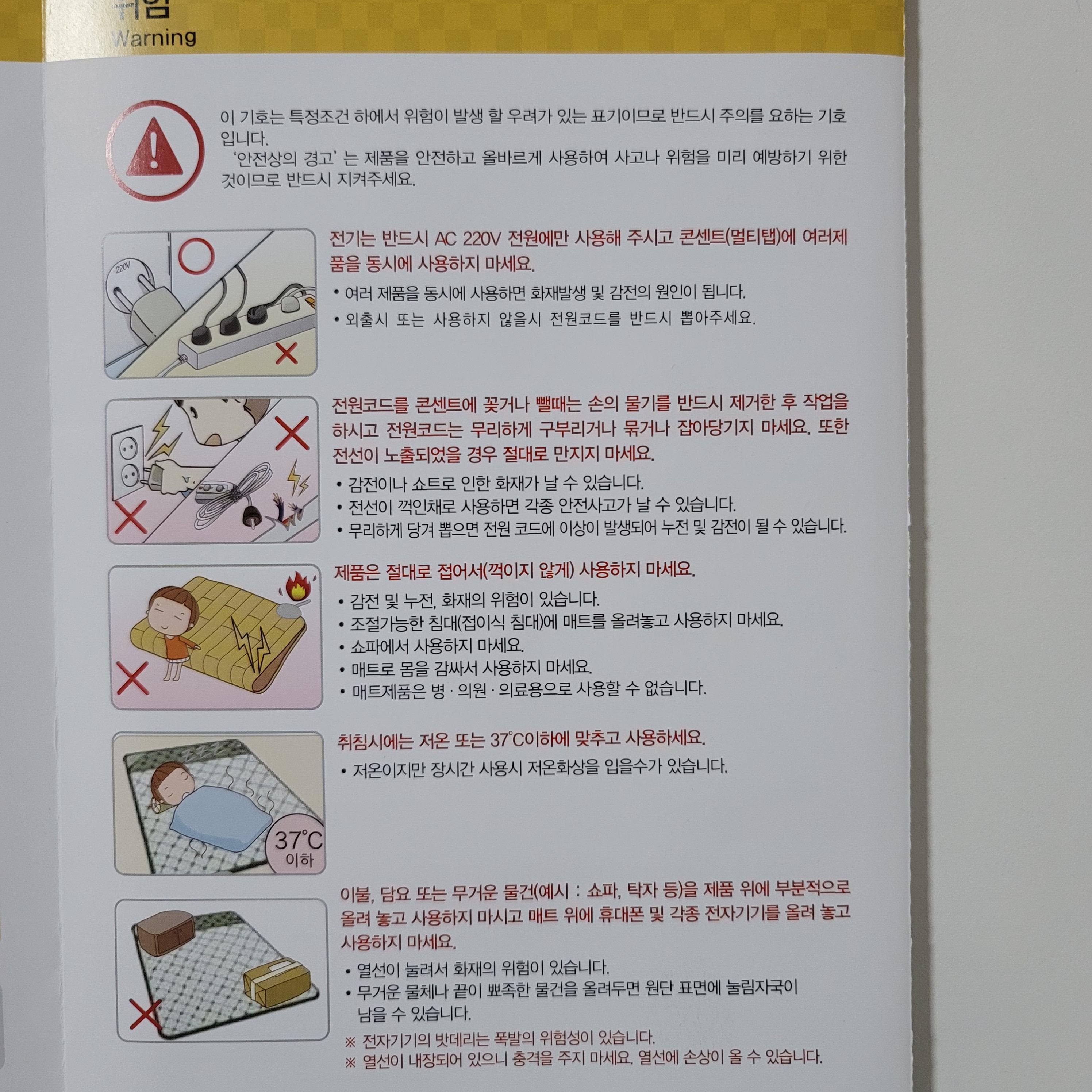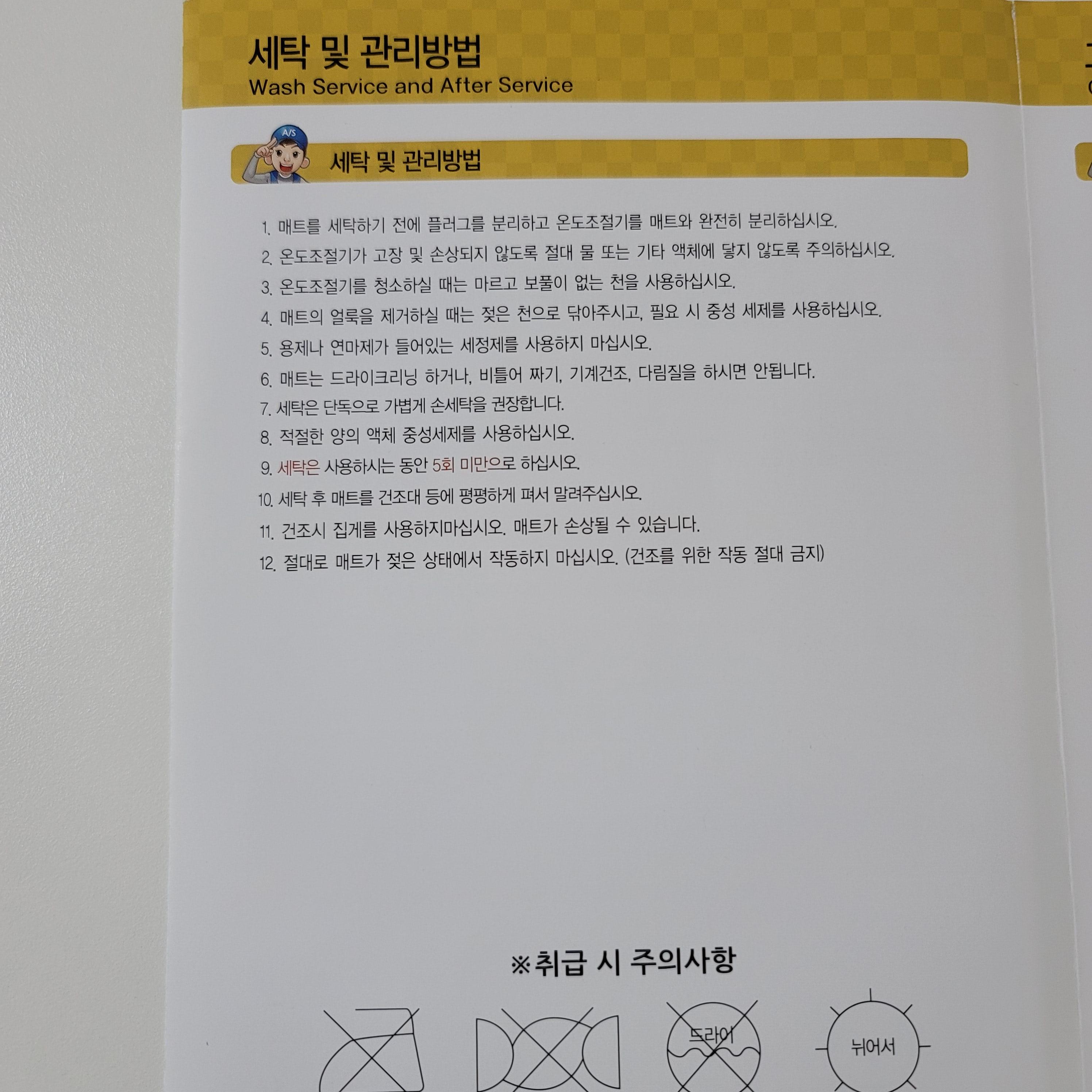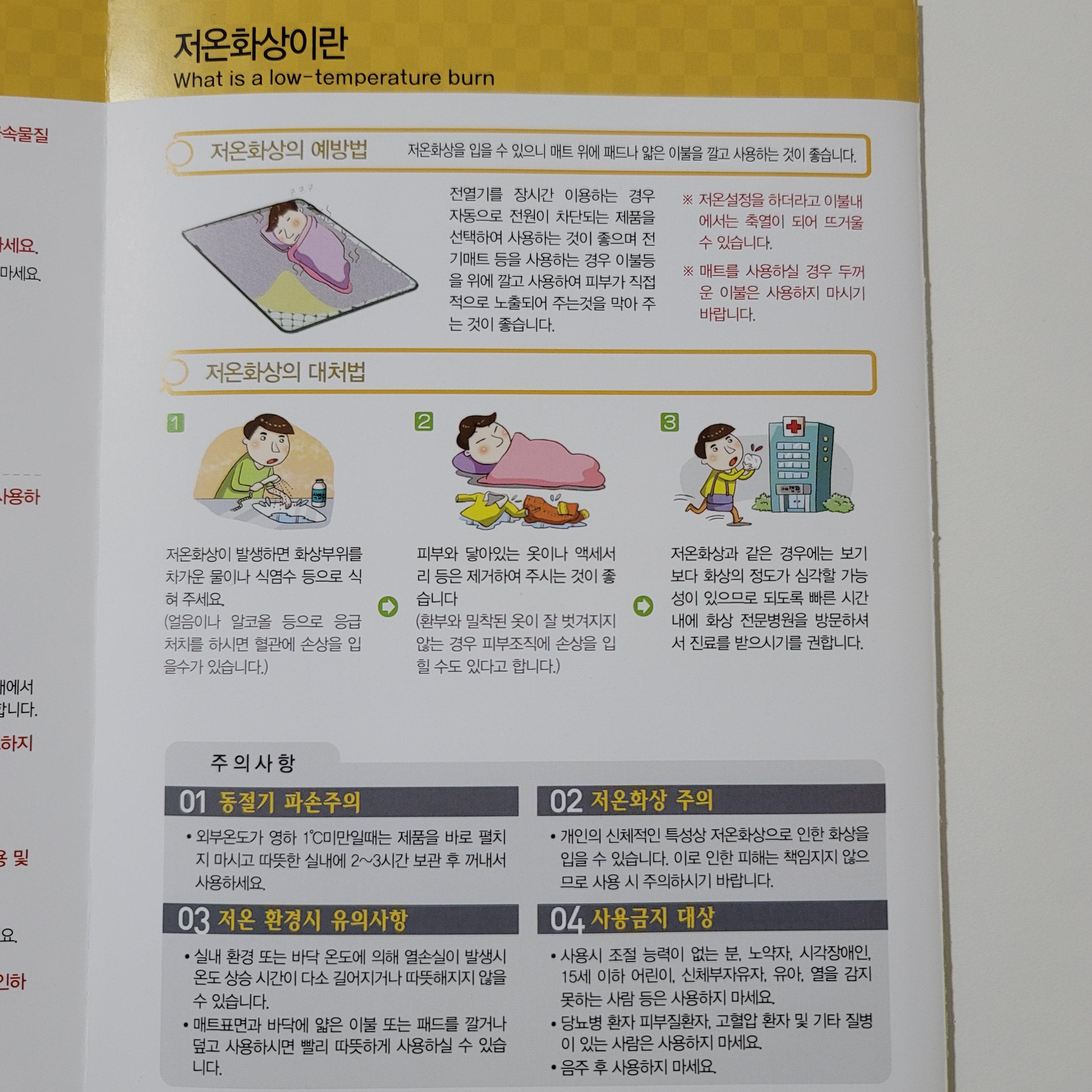 이제 전기매트 사용법에 관한 설명이 나옵니다