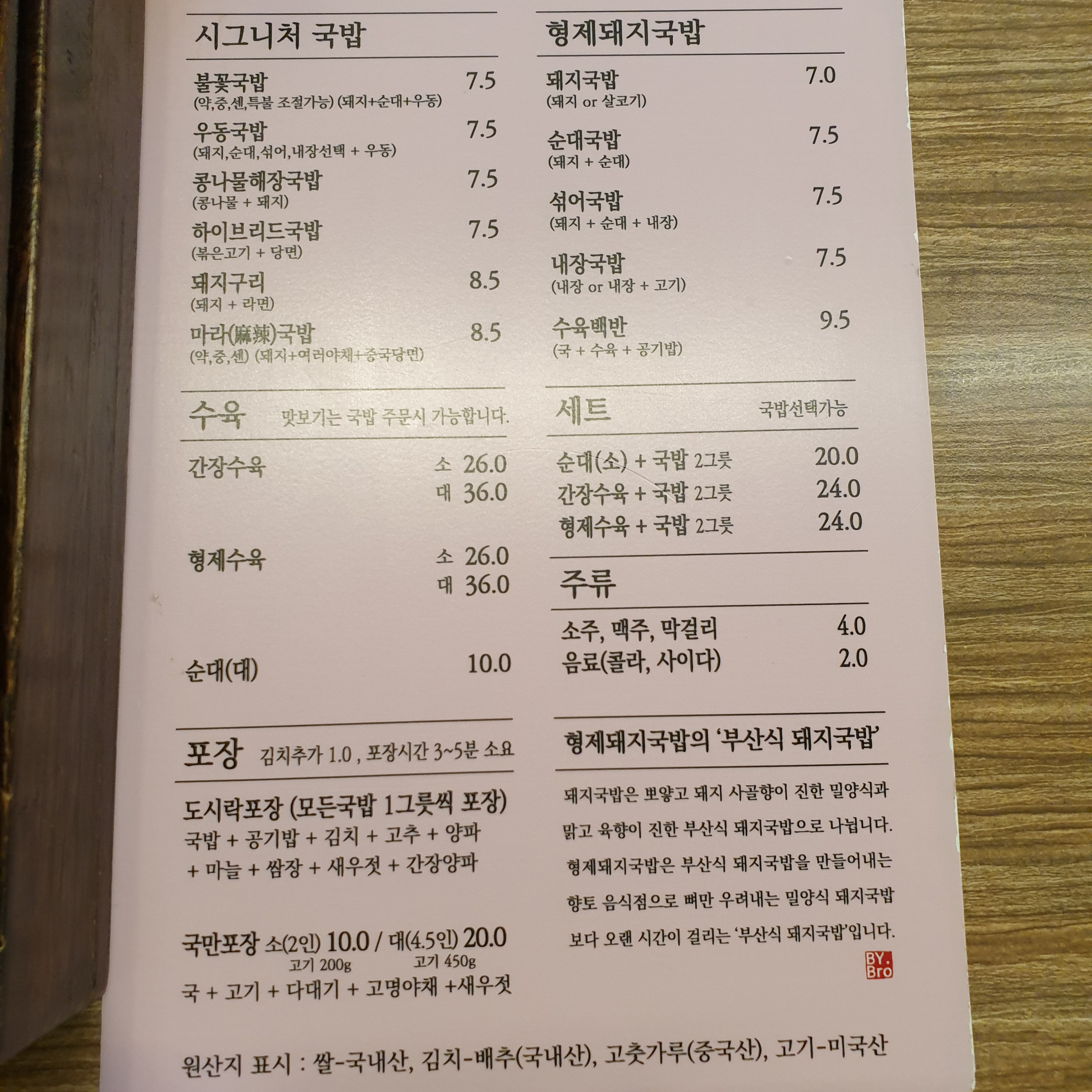 수육, 형제돼지국밥, 세트 등등