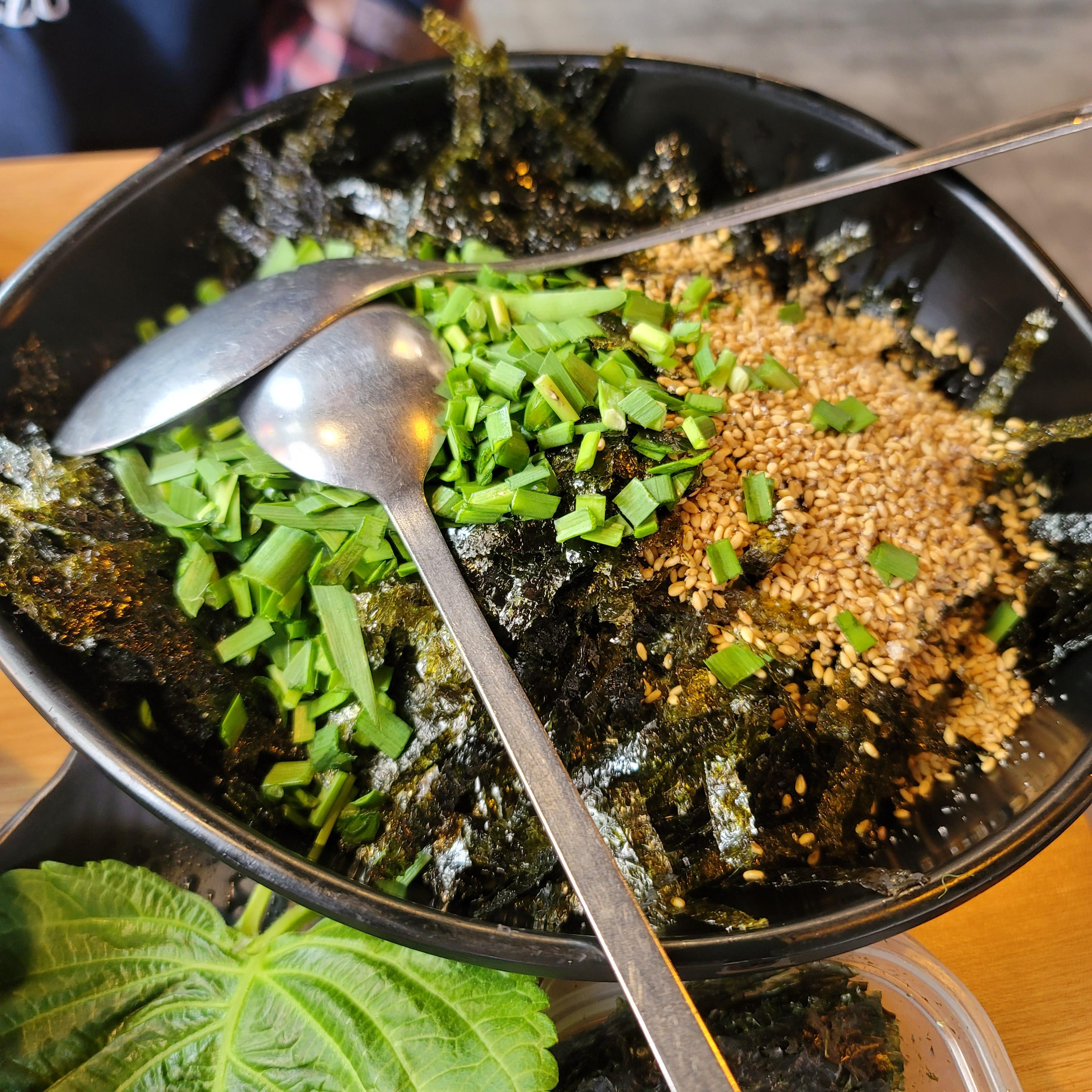 쌈에 소스도 찍고 김도 싸서
