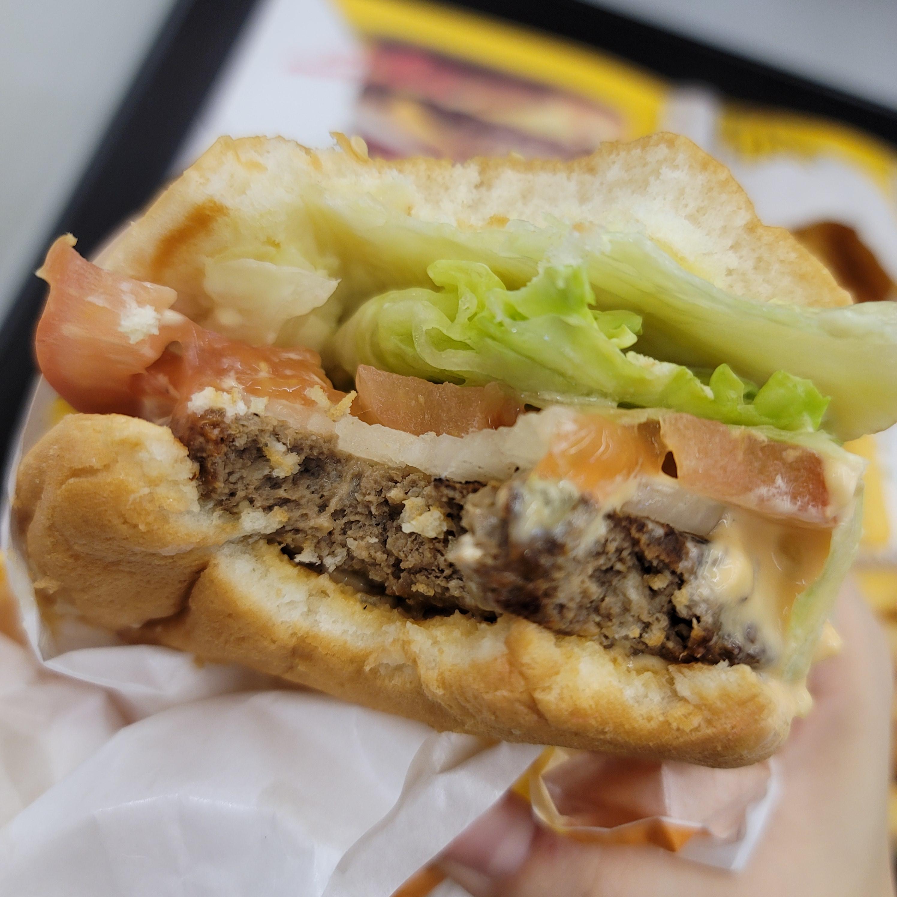 다른 브랜드 버거 보다 고기 패티가 두꺼워서