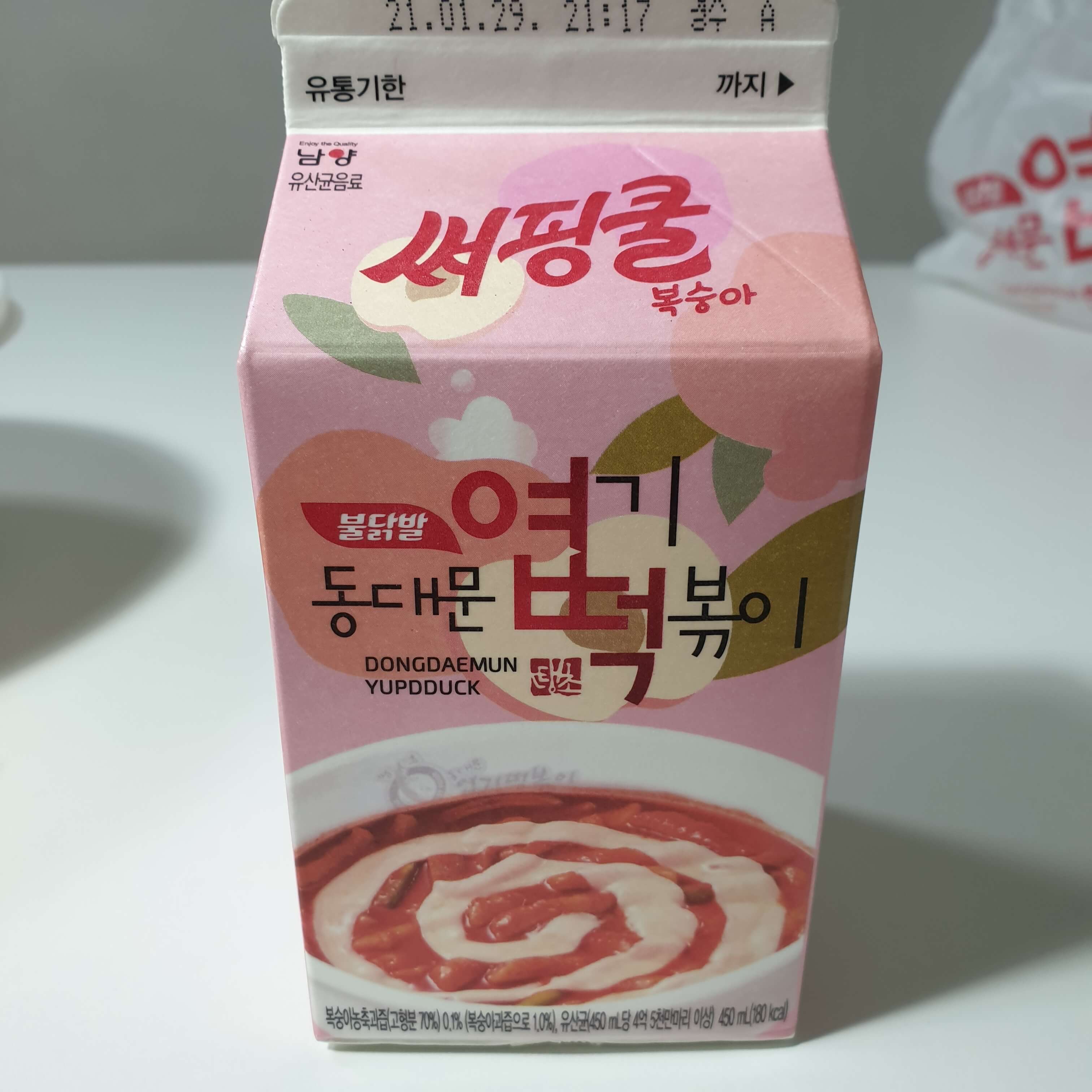 써핑쿨 옆면을 보시면 엽기 떡볶이를 맛있게 먹는 방법이 나와 있습니다.